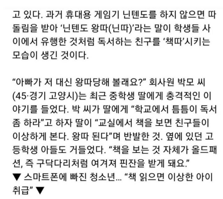 작성자다시 만나 사랑하겠습니다 작성시간 19.06.21 엥? 책읽는다고 왕따를 왜 시킴... 거참...