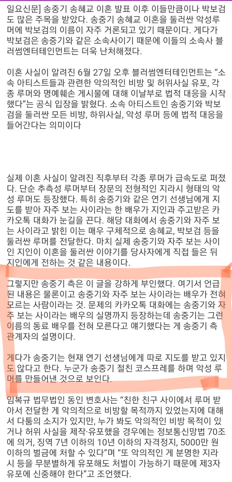 박보검은 루머 불쾌하다고 빡쳐서 법정대응 기사를 냈는데도