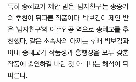 박보검은 확정난 드라마에 뒤늦게 송혜교가 합류했다는 이유만으로