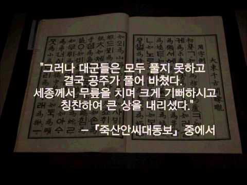《죽산안씨대동보(竹山安氏大同譜)》중 훈민정음 창제와 관련된 기록이다.