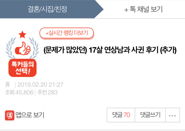 오늘 판에서 17살 연상 남자랑 사귀는 거 어떻게 생각하냐는 글을 올리는 분을 봤는데