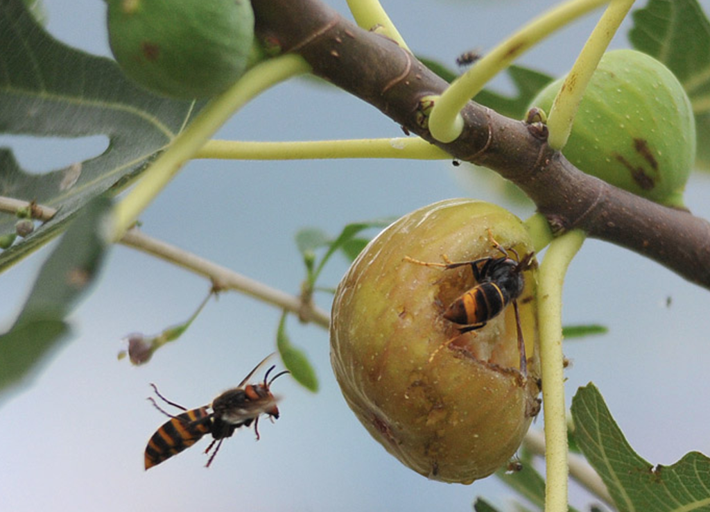 무화과에 조그마한 구멍을 통해서 알을 까러 온 말벌들의