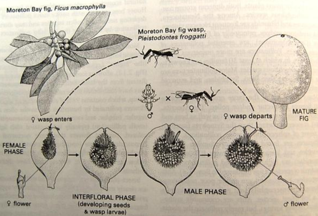 특별하게 진화한 좀벌들이 속으로 기어들어가 꽃들을 수정시켜 준다.