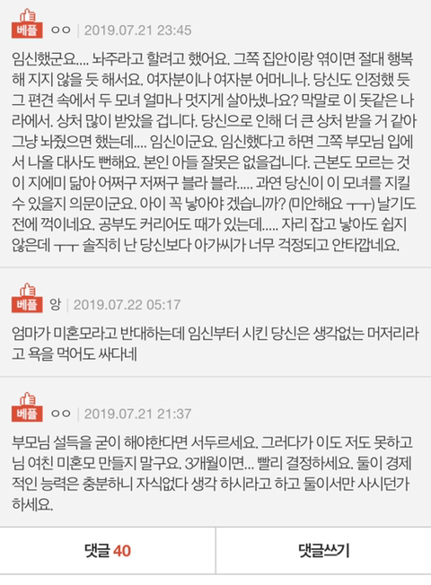 그리고 사랑하는데 부모님이 여친을 구박할 빌미를 제공하냐? 피임 더 철저하게 했어야지.