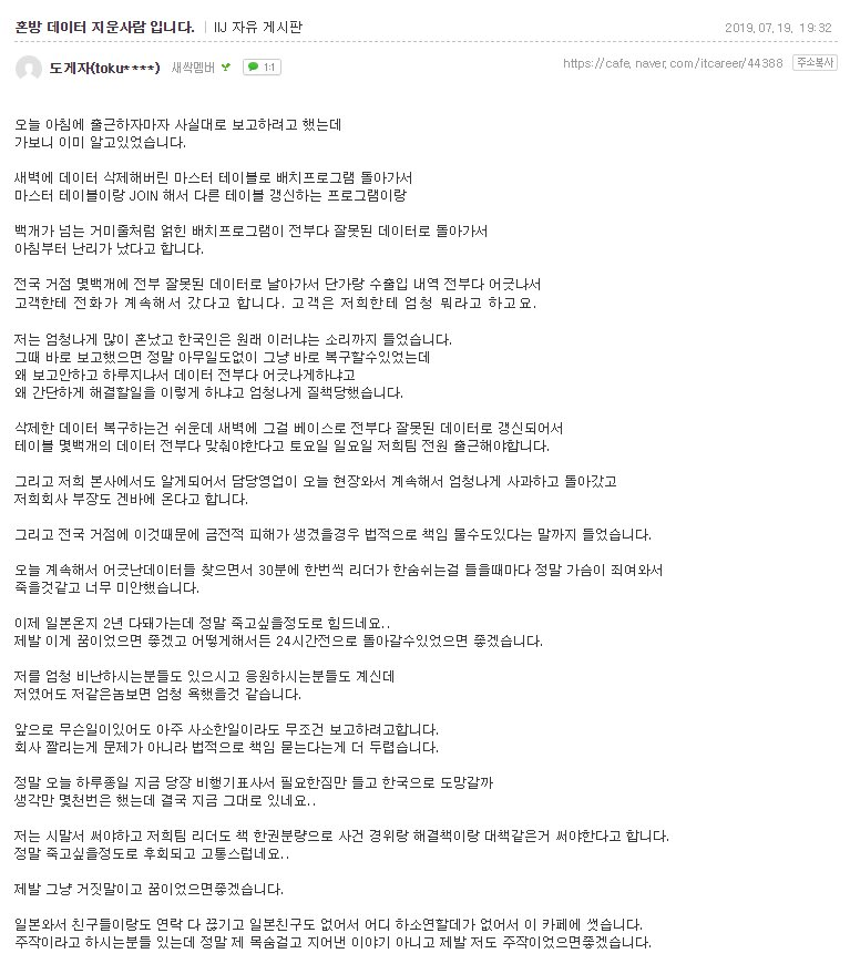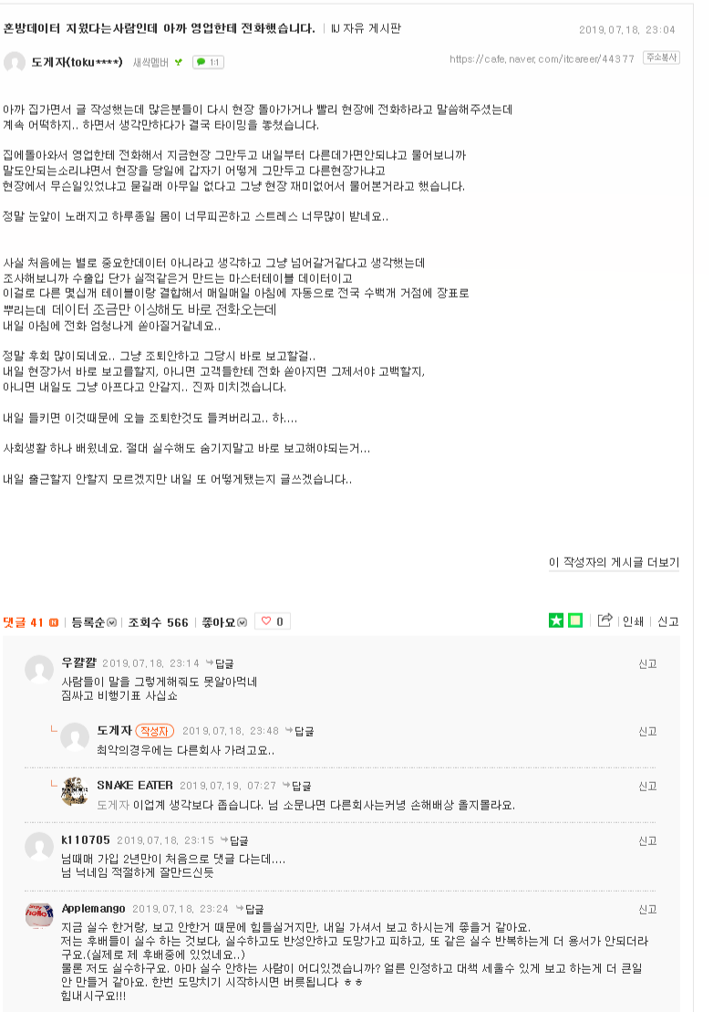 작성자각자의이ㅎㅎㅎㅎ생을봐 작성시간 19.07.23 와 무슨 신입이 사고친줄... 2년차가 ㅋㅋㅋㅋㅋㅋㅋㅋㅅ저정도 머머리도 없나