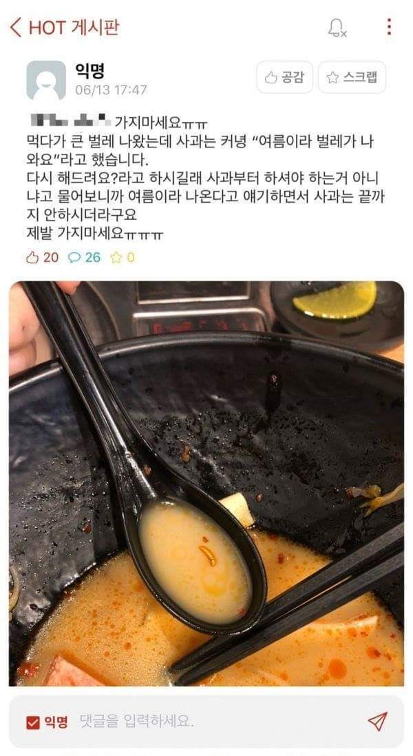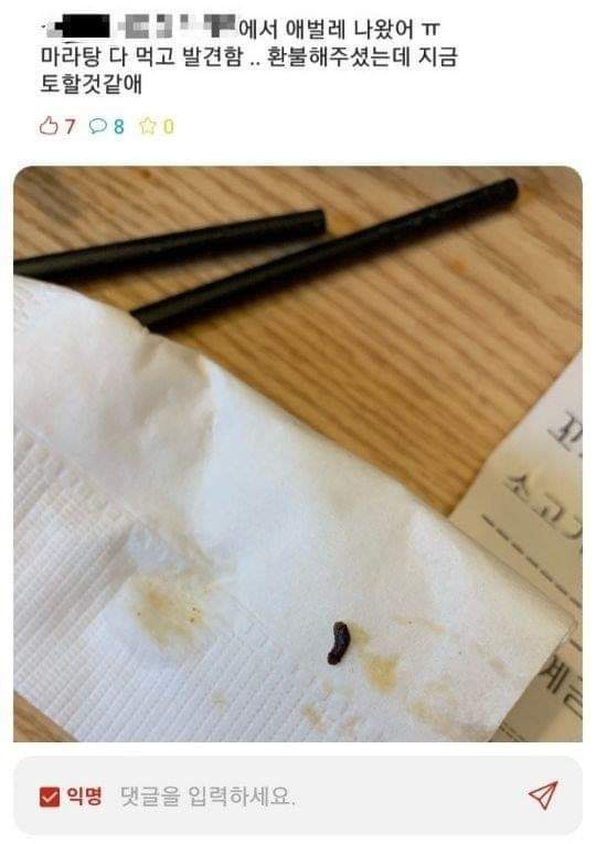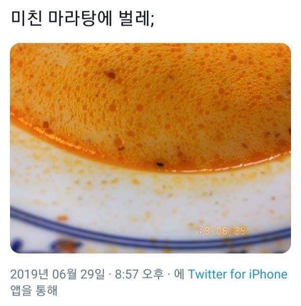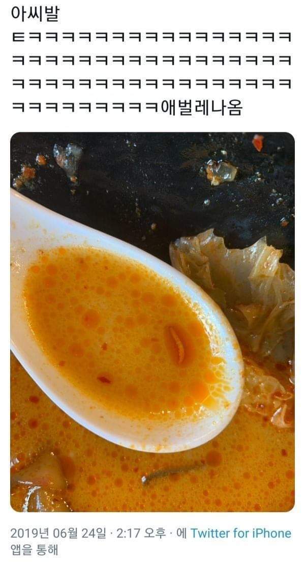 [스크랩] [흥미돋](약혐) 마라탕 위생 상태 작성자스테이크최고야|작성시간19.07.23|조회수34,784 목록 댓글 173 글자크기 작게가 글자크기 크게가 . 다음검색 스크랩 원문 : 도탁스 (DOTAX) 현재 게시글 추가 기능 열기 북마크 공유하기 신고 센터로 신고 댓글 댓글 173 댓글쓰기 답글쓰기 댓글 리스트 작성자콜센터 | 작성시간 19.07.30 백종원의 마라탕 나올때 됐다 작성자똑뚜미여사 | 작성시간 19.07.30 와 시발 ㅡㅡ 작성자언니제발날가져요 | 작성시간 19.07.30 근데왜유독 마라탕이 더라운거? 작성자군것질얌얌굿 | 작성시간 19.07.30 하아... 작성자주먹밥쿵야 | 작성시간 19.07.31 오마이갓 시발 댓글 전체보기
