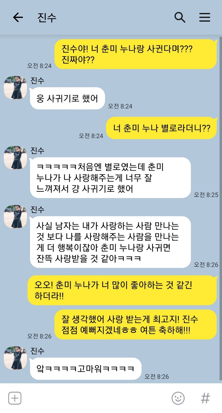 그래서 자기도 상대방, 남자파트너를 존중해서 동등하게 보려고 항상 노력하고 의식하지.