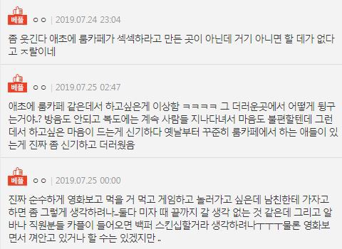 작성자항상하늘색약속 작성시간 19.07.25 방학때 놀겸 공부할겸 룸카페갔는데 와...내 앞방? 거기 커튼 잡으면서 열고닫고 열고닫고