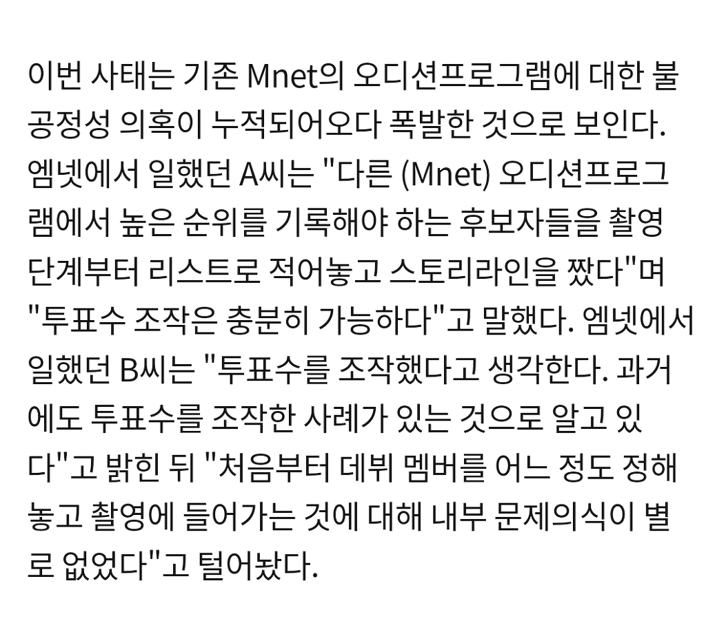 과거 엠넷에서 문자투표를 받던 모든 프로가 의심받기 시작하는 중