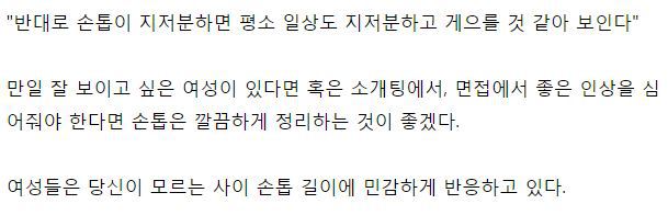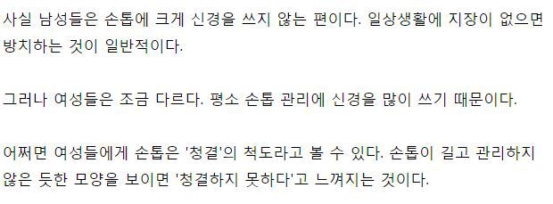 작성자코코넛커피 작성시간 19.08.07 손톱 긴 여자들 중에 더러워보이는 사람 한 명도 없었음