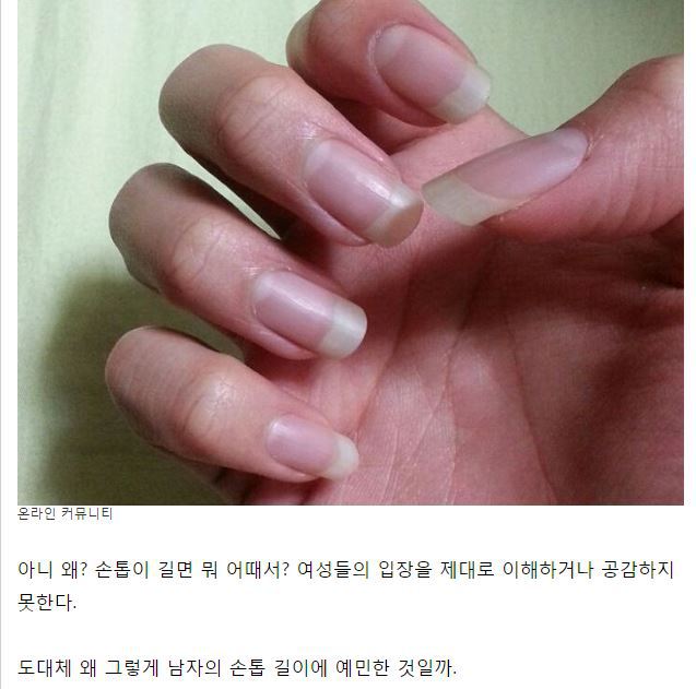 작성자상수야안타를날려주세요 작성시간 19.08.07 사진에도 딱 나와있네 남자들은 좀만 길어도 때끼고 구질구질 토나오고 여자는 길게 길러도 깨끗하고 깔끔하게 정리되어있는거