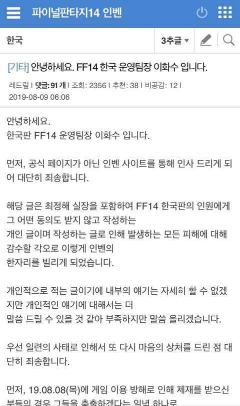 작성자개비개비가뭐니아버지아버지라고하렴 작성시간 19.08.09 저녁에 공식입장 올린다는데ㅋㅋ 어떻게 나올지..어휴 진짜 한참 미쳐있던 게임이고 현생바빠서 못하고 있었는데 정떨어진다.. 운영진들 정말 일 못함