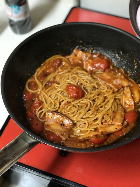 두꺼운 베이컨 가득 넣고 만든 토마토 스파게티!