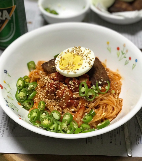 김치 비빔국수 매콤하게 만들어 먹었음