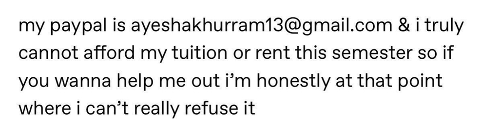 이번학기 학비와 렌트비 때문에 걱정하는 글과 함께