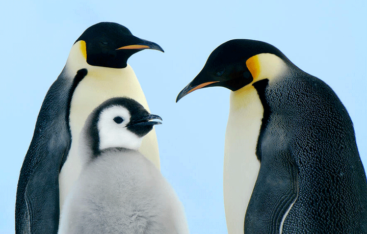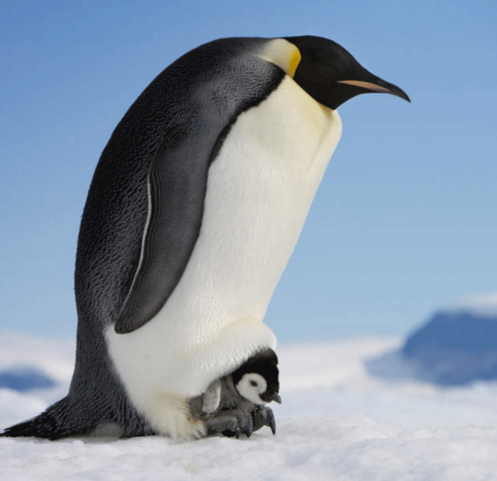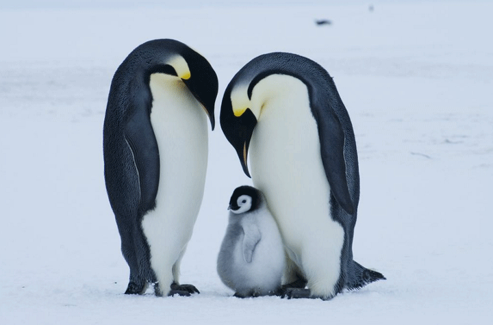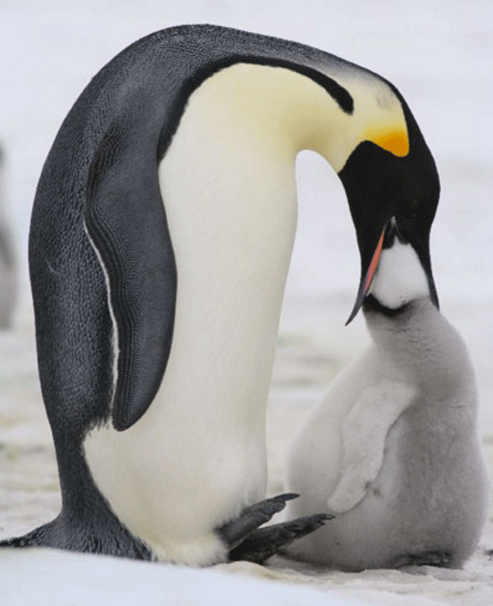 암컷 펭귄이 알을 낳으면 바다로 먹이를 구하러 떠나고 수컷 펭귄이 알을 4달동안 품음.