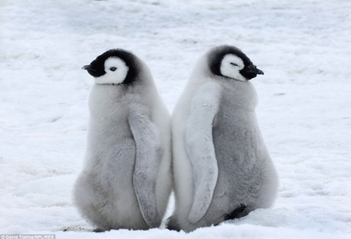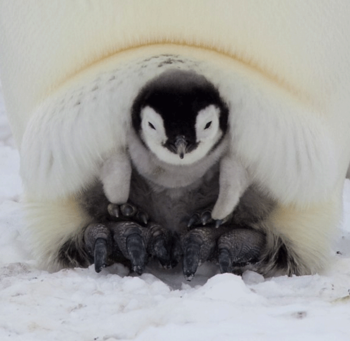 아기 펭귄들은 털이 완성되지 않았기에 추우니까 서로의 체온으로 이렇게 오글오글 모여서 서로 꼭 붙어있음