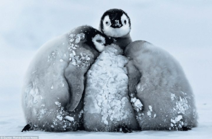 극심한 남극의 추위 앞에서는 황제펭귄들이 원형을 만들어 바깥쪽 펭귄, 안쪽 펭귄이 서로 자리를 바꿔서 돌아가며 바람을 막아주고(huddling)