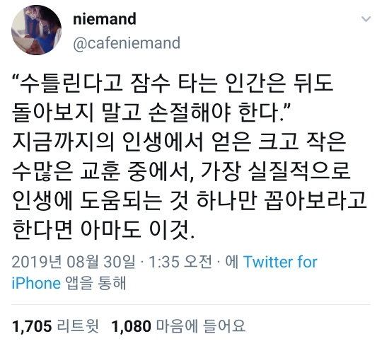 작성자좋은게좋은거지 작성시간 19.09.12 나는 다 풀고 넘어가는 주의인데 저렇게 잠수손절시도해본 애들 살면서 딱 두명있음 근데 걔들은 진짜 그렇게 손절당한 친구 많아 나 손절하기 직전에도 누구 한명이 잠수타서 나한테 맨날 욕함.. 그리고 그 두명 공통점이 강약약강임 사람 차별하고 무시하고 .. 후 ^^