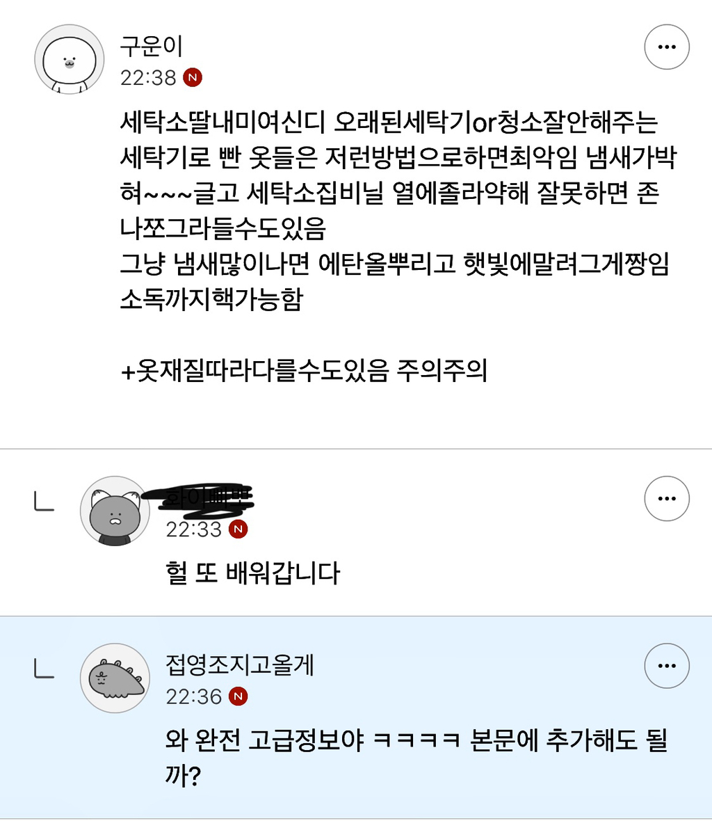작성자Emoji 작성시간 19.10.13 수건같은거 쉰내가 빨아도 안빠질땐 물 젖은상태로 비닐에 넣어서 전자렌지 돌리면 됩니당 빨래 삶기 귀찮을때 좋은방법!! 울엄마가 알려준 꿀팀