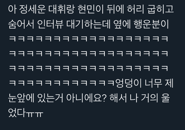 그래서 본인이 연검에 엉덩이 있는 거 보고 무슨 사건이 있나.. 무대에서 실수했나.. 했었다고ㅋㅋㅋㅋㅋㅋㅋㅋㅋㅋ 나같아도 존나 화들짝 놀랄듯;;