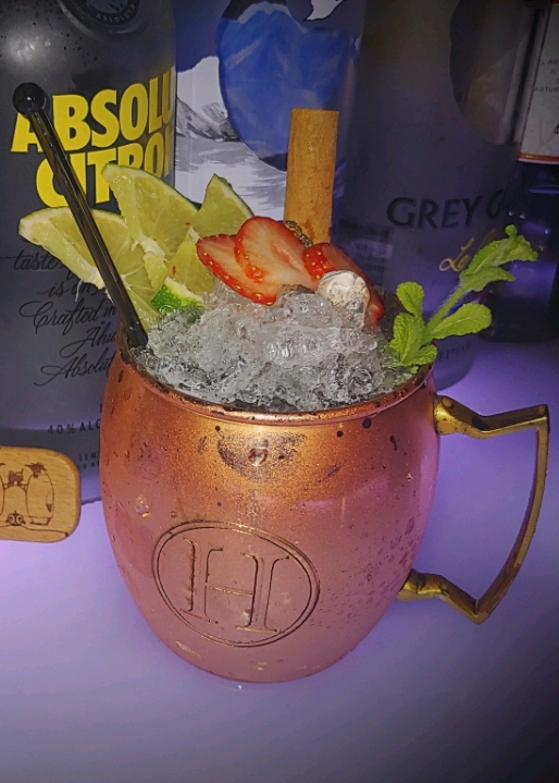 모스코뮬~~보드카베이스! 이 칵테일은 악개가 있어 진피즈와 진토닉의 중간쯤? 크러쉬아이스와 동잔이 특징