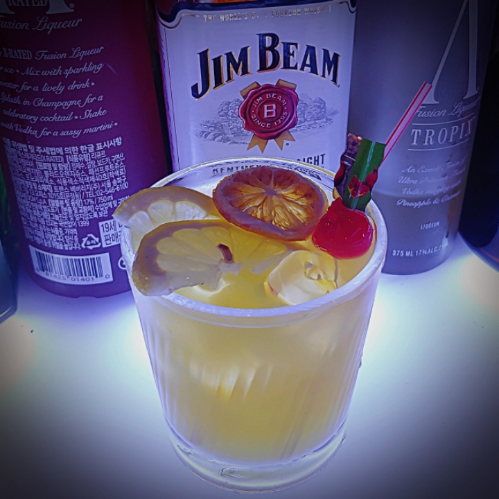 이것도 창작칵테일.. 망고주스와 보드카베이스인데 찐망고주스 구하기 힘들어서 무참히..^^까임..