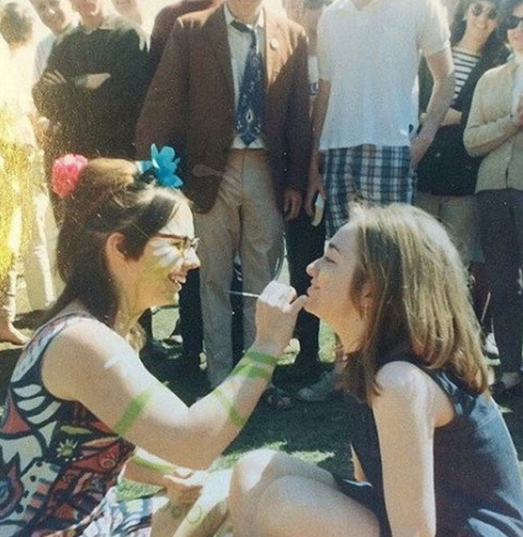1960년대, 얼굴에 페인팅 받는 대학생 힐러리 클린턴