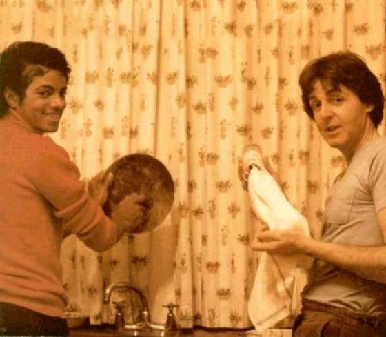 설거지하는 마이클 잭슨과 폴 매카트니