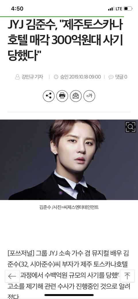 [여시뉴스데스크]JYJ김준수, "제주토스카나 호텔 매각 300억원대 사기 당했다" 작성자설리질리|작성시간19.10.18|조회수9,524 목록 댓글 45 글자크기 작게가 글자크기 크게가 출처 : http://www.4th.kr/news/articleView.html?idxno=18036 다음검색 현재 게시글 추가 기능 열기 북마크 공유하기 신고 센터로 신고 댓글 댓글 45 댓글쓰기 답글쓰기 댓글 리스트 삭제된 댓글입니다. 답댓글 작성자건강하고행복하게돈많이 | 작성시간 19.10.18 22 한결같음 작성자돈존나벌어서이바닥뜬다 | 작성시간 19.10.18 직원월급은다줌? 작성자바나나가드 | 작성시간 19.10.18 임금체불 하더니 벌 받았노 ㅋㅋ 작성자트리마제56평 | 작성시간 19.10.19 인과응보 댓글 전체보기