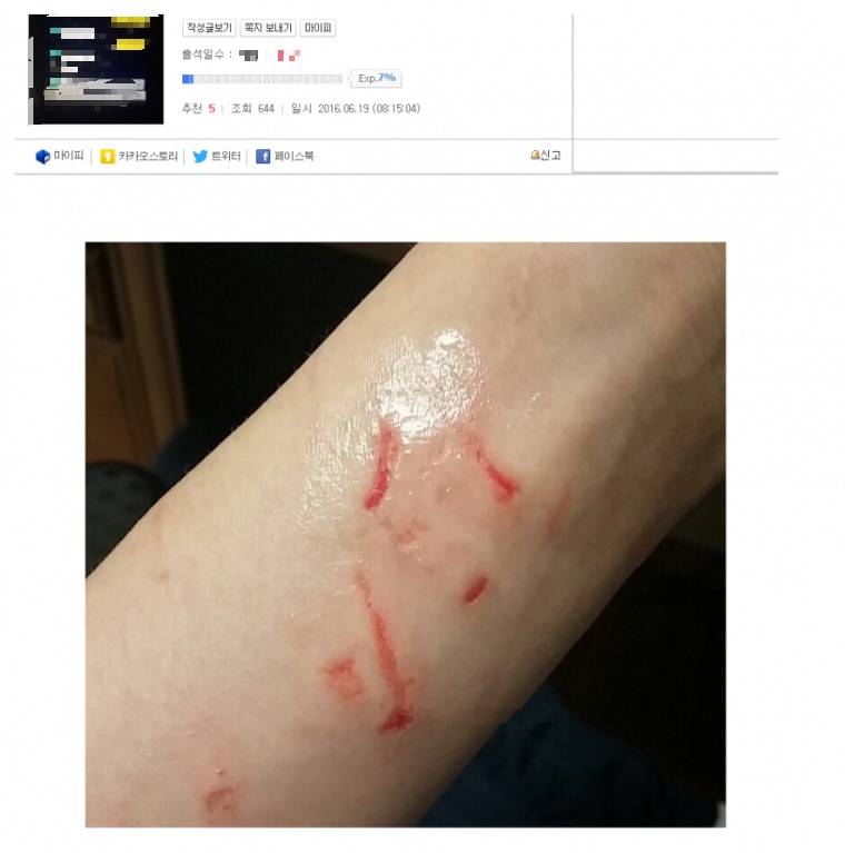 나중에 간호사 언니께 물어보니 제 음부에도 상처가 났다고............실려올때 속옷에 오줌까지 지린상태 였다더군요....;