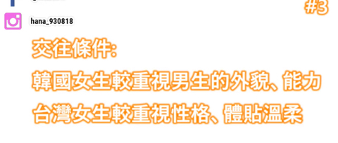 2. 이성을 보는 조건 , 한국여자는 남자의 외모나 능력을 먼저 따지고 , 대만여자는 성격을 먼저 본다
