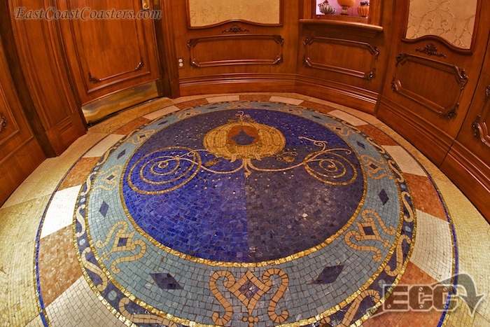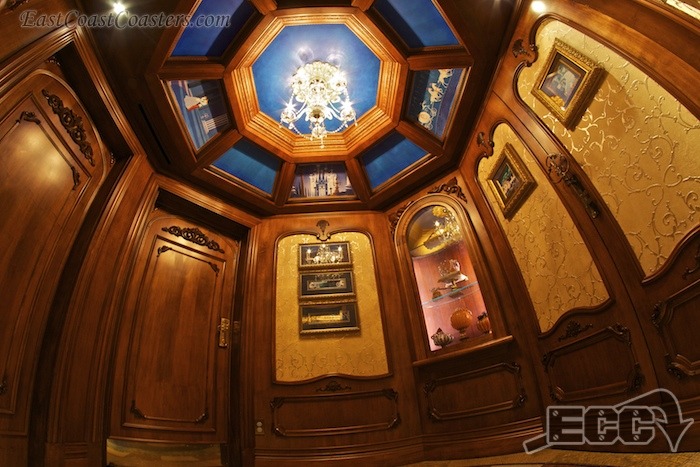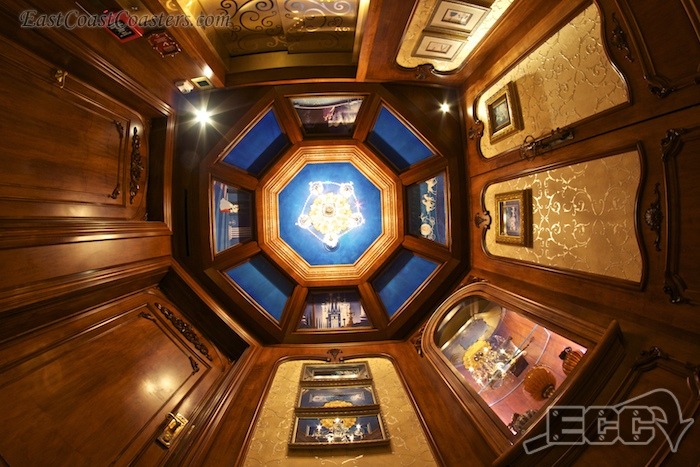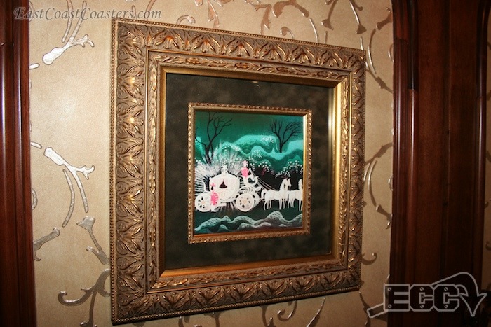 샹들리에..자세히 보면 샹들리에 주변으로도 신데렐라의 삽화가 장식되어 있음