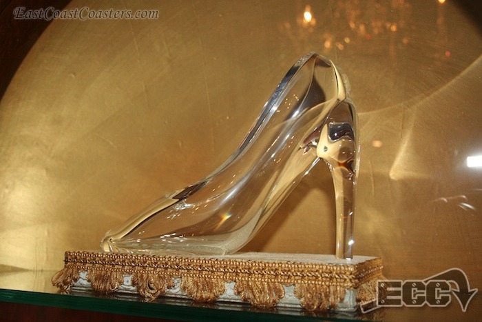 전시되어 잇는 신데렐라의 티아라와 홀, 유리 구두