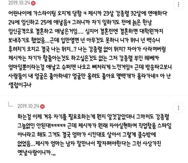 댓글이 많지는 않은데 제시카 입장을 자세히 적어준 댓이 있어서 가져옴!