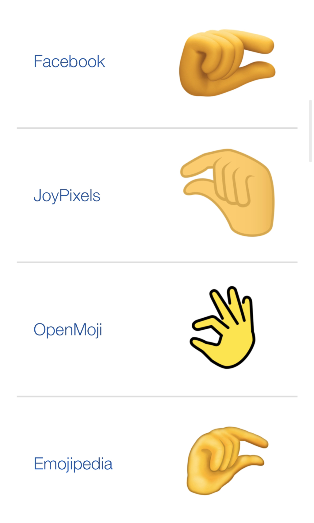 [흥미돋]아이폰 ios 13.2부터 추가되는 이모티콘 중 하나 작성자칼럼|작성시간19.10.29|조회수18,097 목록 댓글 115 글자크기 작게가 글자크기 크게가 출처 : 여성시대 칼럼https://emojipedia.org/pinching-hand/....?...?ㅎ?ㅎ^-^ㅎ사이트 보니까 회사별 이모티콘 있는거 봐선 차차 다른 휴대폰들도 업데이트 될듯..! (이미 되어있으면 미안합니다ㅠㅠ)이모티콘 명칭은 Pinching Hand손가락으로 화면 확대하고 축소하는 제스쳐라고 함하지만 다른 의미로 많이 쓰일듯 ㅎ,,문제시 미안 다음검색 현재 게시글 추가 기능 열기 북마크 공유하기 신고 센터로 신고 댓글 댓글 115 댓글쓰기 답글쓰기 댓글 리스트 작성자낙엽이흔들리고 | 작성시간 19.10.31 🤏🏻 작성자호완평 | 작성시간 19.10.31 푸하하👌🏻 작성자Theboynextdoor | 작성시간 19.11.24 🤏🤏🤏🤏🤏 작성자캘리포니아 말리부 | 작성시간 20.10.31 🤏🏾🤏🏾🤏🏾🤏🏾🤏🏾 한남소츄라노 작성자좋은게 좋은겨 | 작성시간 21.05.04 ㄱㅆ 출시 3년됐는데 이제서야 부랄발광하는게 웃겨서 스크랩아이고 스크랩글에 쓴다는게ㅠㅠ 갑작스런 댓글 미안합니다 댓글 전체보기