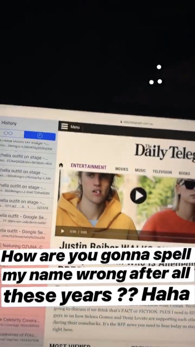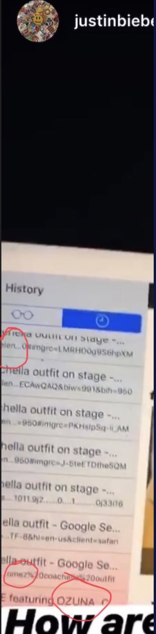 비버가 인스타 스토리에 올린 임신 루머 기사 사파리창에 방문기록이 열려있었음