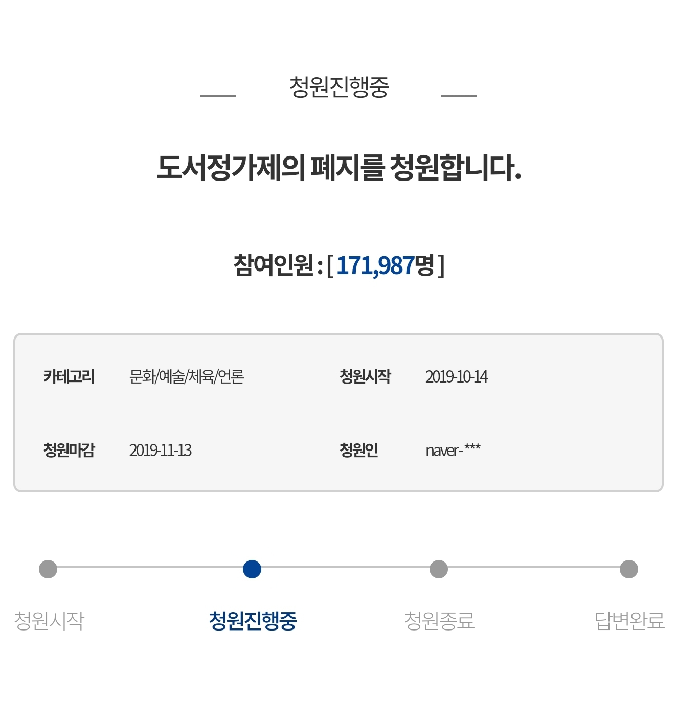 [스크랩] [흥미돋]도서정가제 폐지 청원 작성자환환|작성시간19.10.30|조회수2,604 목록 댓글 38 글자크기 작게가 글자크기 크게가 출처 : 여성시대 환환https://www1.president.go.kr/petitions/583076(출처:https://www.hankyung.com/news/article/2016042259421) 다음검색 스크랩 원문 : 비공개카페 현재 게시글 추가 기능 열기 북마크 공유하기 신고 센터로 신고 댓글 댓글 38 댓글쓰기 답글쓰기 댓글 리스트 작성자히곤사콘 | 작성시간 19.10.30 가즈아와그래도2만명남았오 못채울줄알았는데!!!! 작성자똑순이 | 작성시간 19.10.30 하구왔어~~ 작성자캐롤리안 | 작성시간 19.10.30 하구왔음 작성자카트리에일 | 작성시간 19.10.30 아이디 있는거 싹 다 털어서 하고왔어!!!! 작성자곰이곰곰 | 작성시간 19.10.30 만칠천명!!좀만 더 힘조 댓글 전체보기