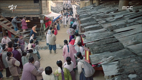 이런 느낌의 저잣거리인데 내가 산 위에서 이런 장터를 내려다보고있었고 셋을 셌더니 나는 그 장터 사이에 꽃신을 신고 걷고 있었어