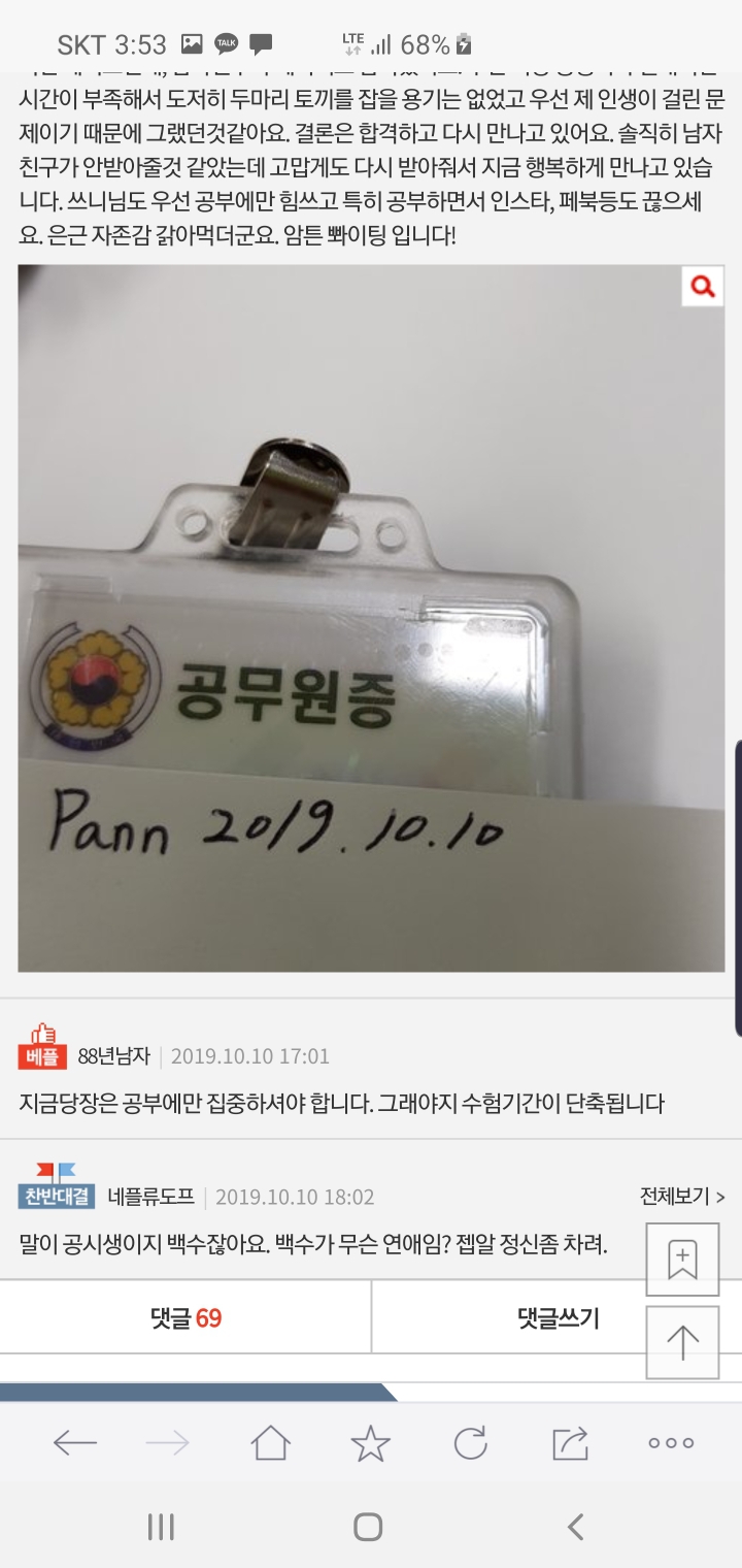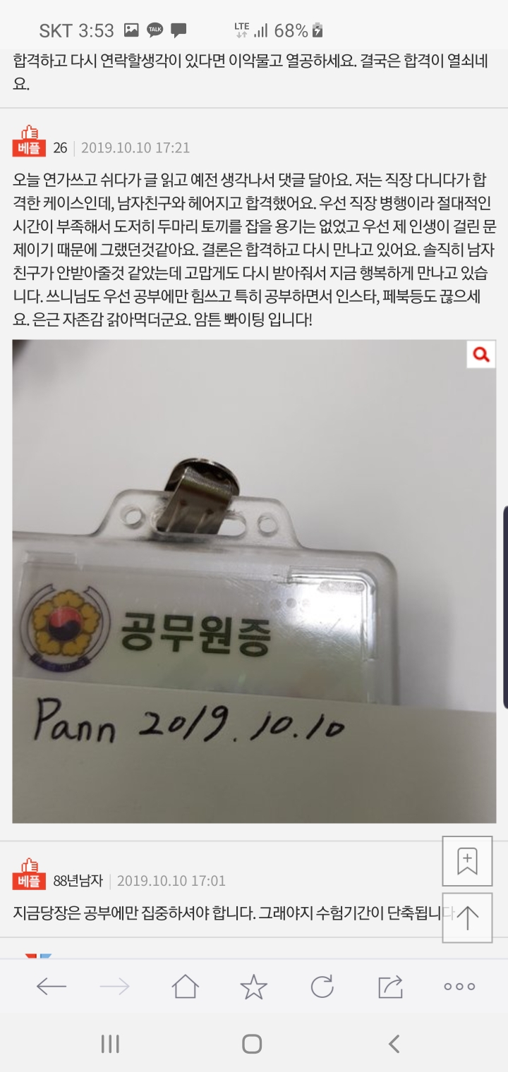 작성자옥길리. 작성시간 19.11.09 공시 전에 오래 연애한 거면 연애하는 게 낫고