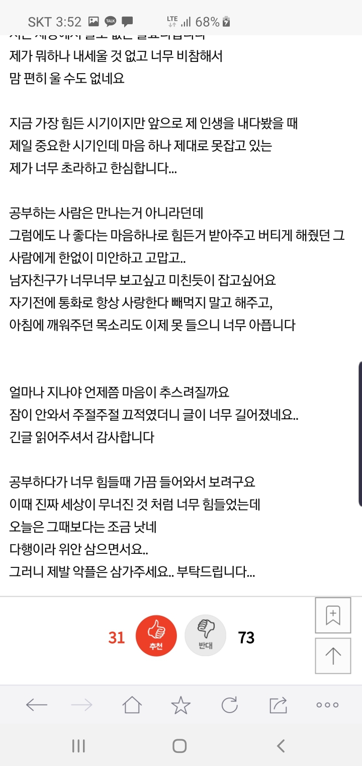 작성자해띠 작성시간 19.11.09 수험생 시절 안헤어졌으면 나도 합격 못했을 듯