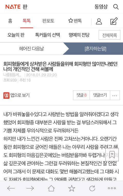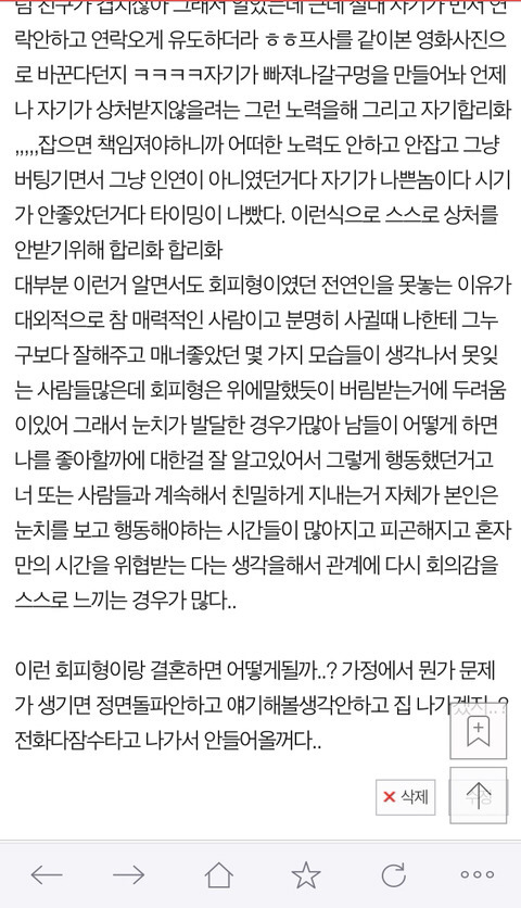 [스크랩] [기타]회피형들에게 상처받은 사람들을위해 회피형만 많이만나봤던 나의 개인적인 견해 써볼께
