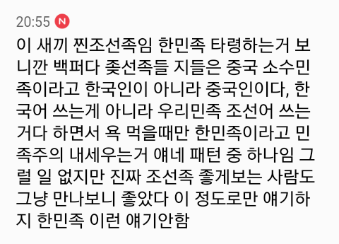 이로써 여시에서 조선족 올려치는 글=조선족이 쓴 글이라는걸 지들 스스로가 증명해버림ㅜㅜ