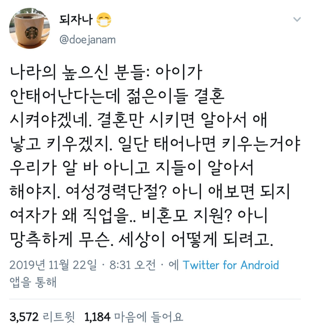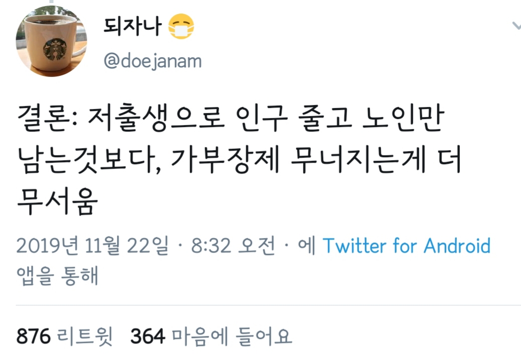 답댓글 작성자날카로운여시 작성시간 19.11.23 ㅇㄱㄹㅇ 딱맞는 예시 같다 출생률이 문제면 정자은행에 버튼 눌릴게 뭐있어 가부장제 유지가 더 중요하니까 매매혼만 늘어감