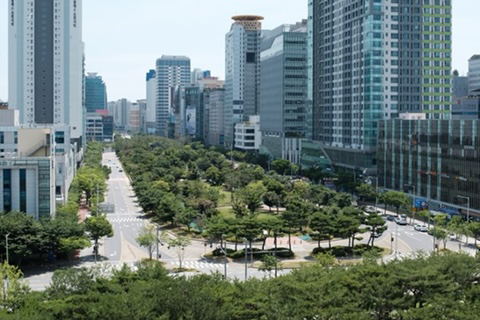 초고층 빌딩이 많고 우리나라에서 가장 큰 영화제가 열리기도 하는 곳.