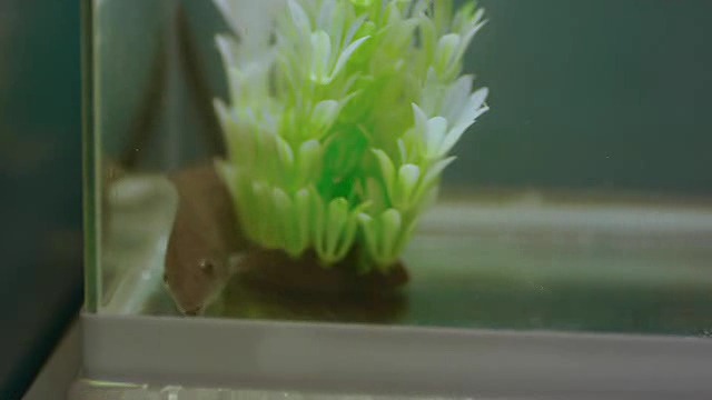 파이는 자기가 키우던 물고기를 새 어항에 풀어 넣는 중