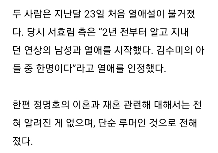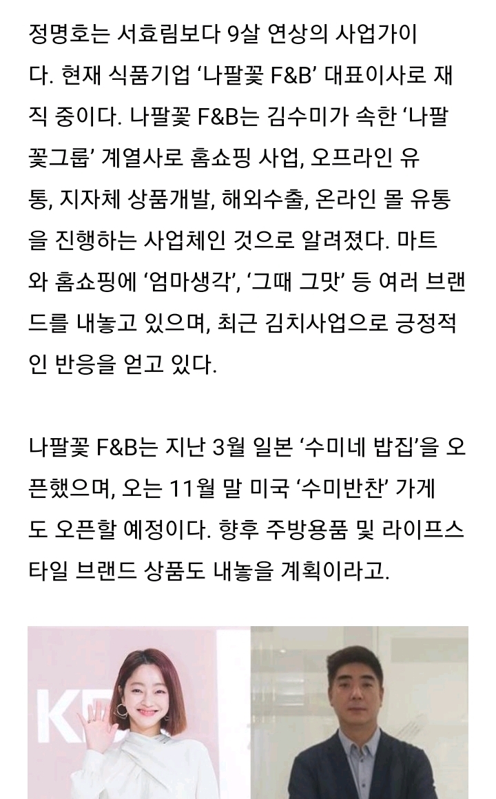 [흥미돋]김수미 아들 정명호, 직업은 ‘나팔꽃 F&B‘ 대표이사…‘이혼+재혼설 무엇?’ 작성자블루보틀댕댕|작성시간19.12.03|조회수7,915 목록 댓글 2 글자크기 작게가 글자크기 크게가 출처 :http://www.topstarnews.net/news/articleView.html?idxno=698590재혼루머돌던데 재혼아니래!! 다음검색 현재 게시글 추가 기능 열기 북마크 공유하기 신고 센터로 신고 댓글 댓글 2 댓글쓰기 답글쓰기 댓글 리스트 작성자인천녀쟈 | 작성시간 19.12.03 두 분 닮으셨다 작성자왈왈왈왈왈왈왈왈 | 작성시간 19.12.03 효림....행복해.......ㅠ 댓글 전체보기