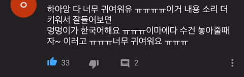 저 유튜브 가보니 외국인들한테도 반응이 엄청 좋더라 ㅠㅠ우리나라 캐릭터, 애니 산업이 더더 발전했으면 좋겠어.