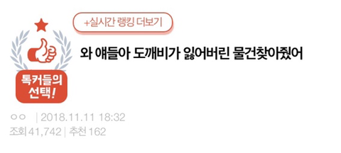 전에 톡선에서 이어쓰기썰쓰니글 댓글중에 물건 잃어버렸을때 동전이랑 사탕 올려놓고 도깨비한테 소원빌면 도깨비가 안보였던 물건이 갑자기 사람눈에띄게 해준다는댓글 봤었는데 내가 이틀전에 아이폰젠더를 잃어버렸거든ㅠㅠ진짜 두번째 잃어버린거라서 간절해가지고 책상에 사탕이랑동전올려놓고 도깨비한테 소원빌었었는데 진짜 방금 무의식적으로 책장훑어보다가 보조배터리에 껴있는 젠더 찾았어ㅠㅠㅠㅠㅠ 와진짜 이럴수가있구나.. 우연일수도 있긴한데 너무 신기했어.. 너네도 잃어버린물건있으면 속는셈치고 한번쯤 도깨비한테 소원빌어봐 진짜신기하다