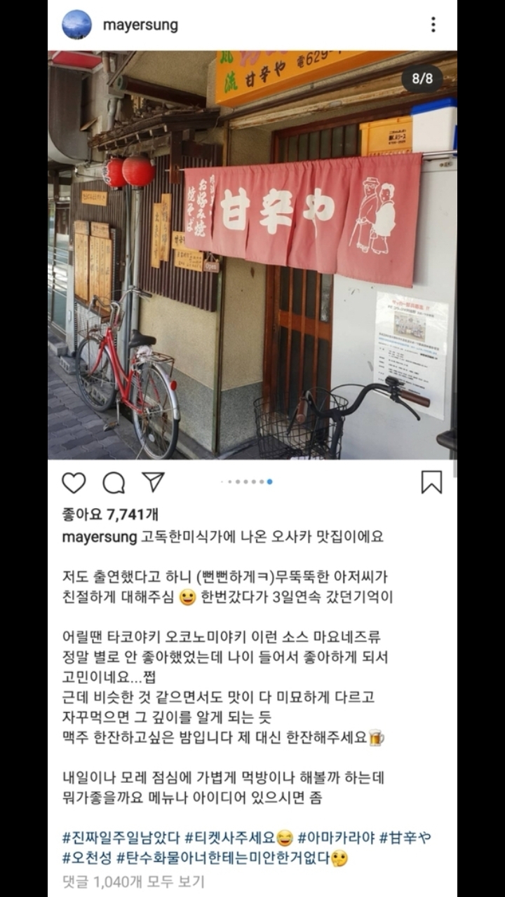 [흥미돋]이시국에 오사카 맛집 추천한 성시경 작성자쌉가능정신|작성시간19.12.15|조회수11,442 목록 댓글 95 글자크기 작게가 글자크기 크게가 출처 :https://www.instagram.com/p/B6A7U9SFLrN/?igshid=jgzao8jsuurh어제 올림 다음검색 현재 게시글 추가 기능 열기 북마크 공유하기 신고 센터로 신고 댓글 댓글 95 댓글쓰기 답글쓰기 댓글 리스트 작성자아침에눈을뜨면 | 작성시간 19.12.16 한국남자들 이 시국에 ㅇㅈㄹ 떨면서 유난취급함 ㅋㅋㅋ 유튜브 댓글만 봐도 그런데 공인이 대놓고 와~~ 작성자어휴증말어렵네 | 작성시간 19.12.16 고대남 작성자Nicha Yontararak | 작성시간 19.12.16 댓글들.대환장파티네 작성자트로피카나스파클링복숭아맛 | 작성시간 19.12.16 으 미친 작성자깨르보나라 | 작성시간 19.12.16 몇시고 댓글 전체보기